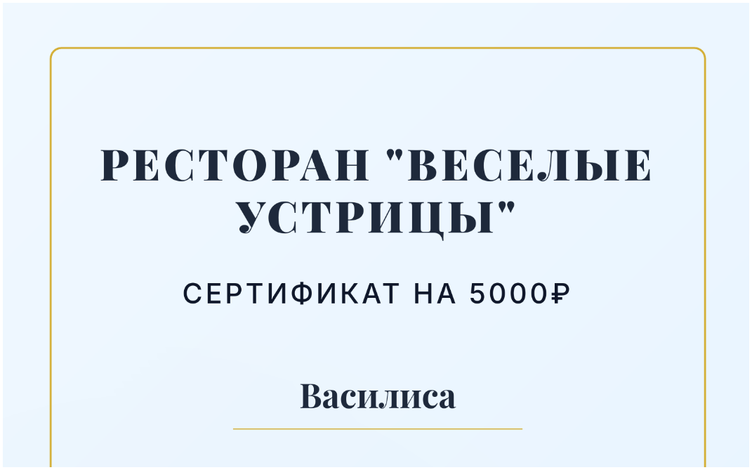 Подарите сертификат в ресторан "Весёлые устрицы" любимым, друзьям, коллегам!